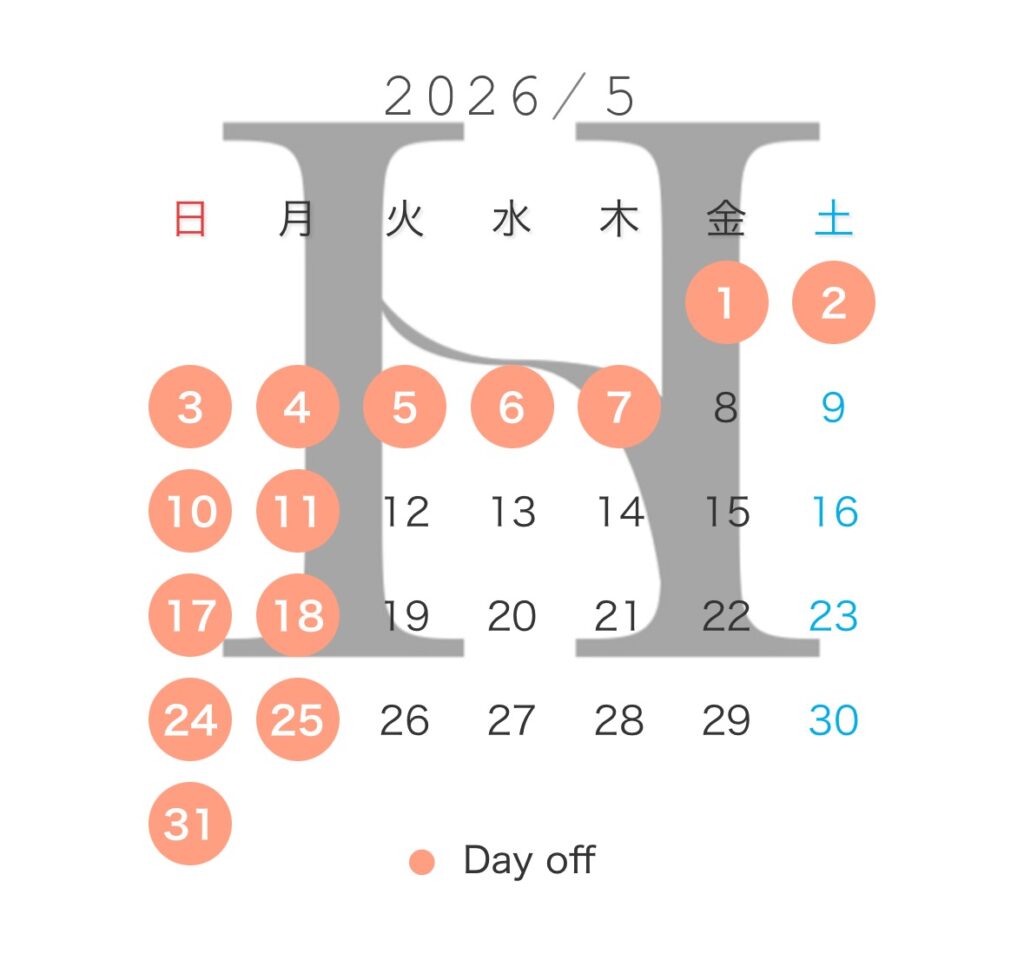ゴールデンウイーク明けの営業は8日(金)からとなります。